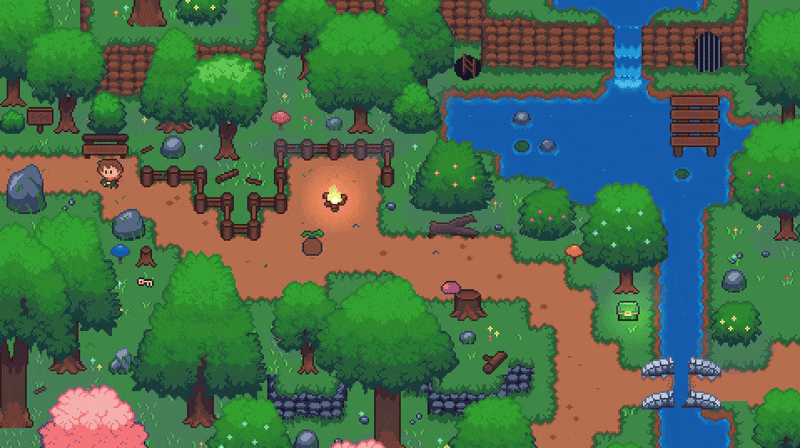 A complete top-down forest kit for building full games in Godot (see sidebar GIF), Unity, GameMaker & more.
