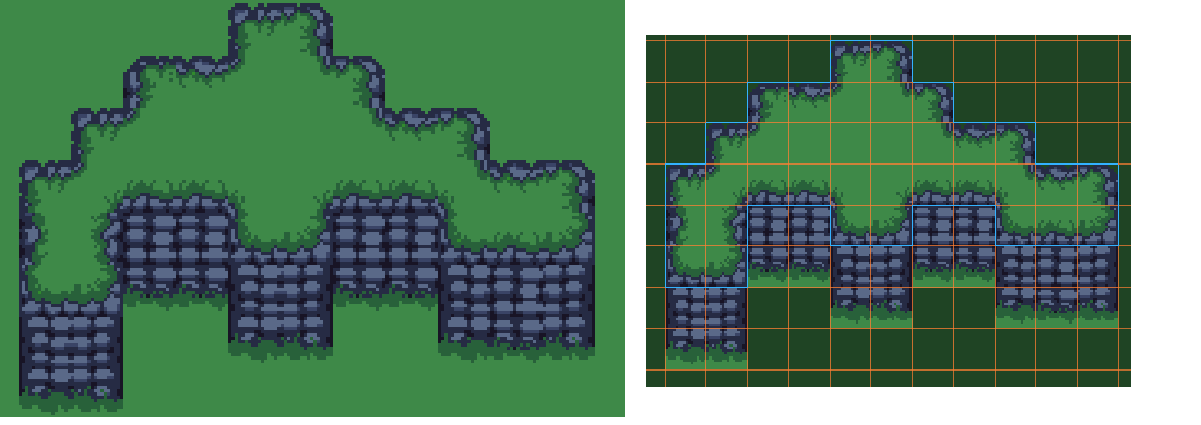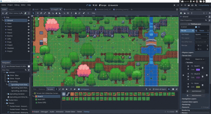 I don't suppose you could share the tilemap setup in Godot. I'm having trouble with understanding how to set up the more complicated things like cliffs and such.